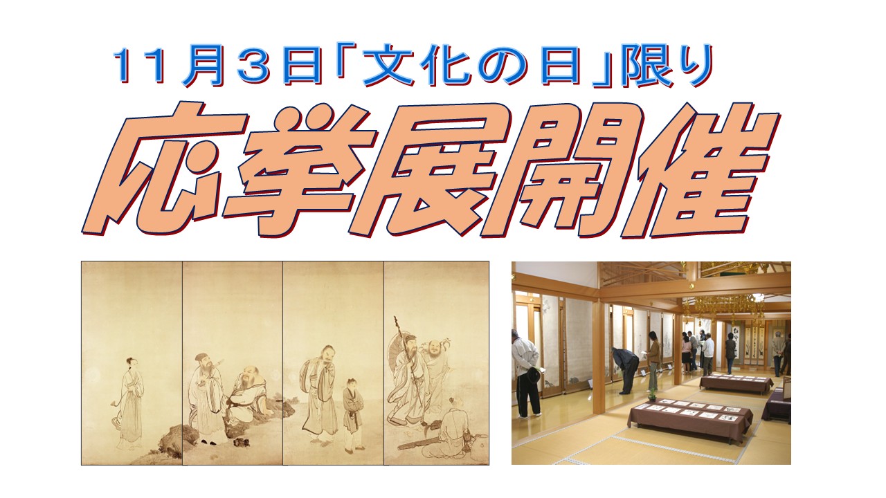 11月3日「文化の日」は、金剛寺所蔵の重要文化財・群仙図(12幅の内9幅)を無料一般公開する「応挙展」の日です。