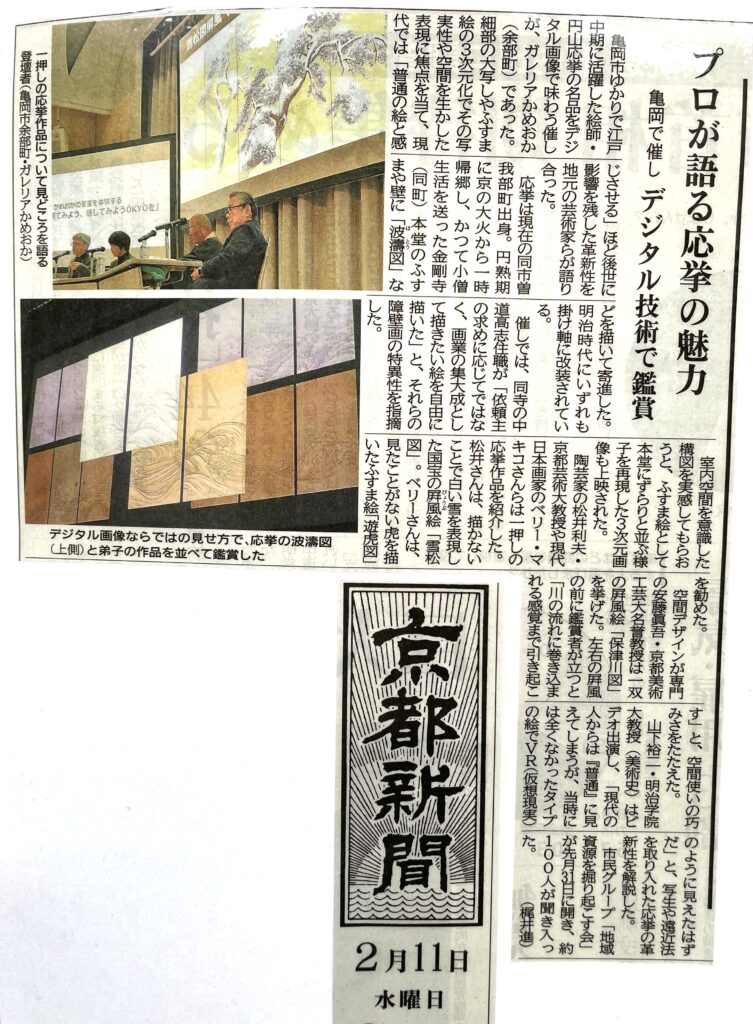 私もコメンテーターを依頼をされ、金剛寺の円山応挙筆「波涛図」と如意寺の土岐済美筆「波涛図」を比較する内容があったため、如意寺の松岡住職を訪問しました。